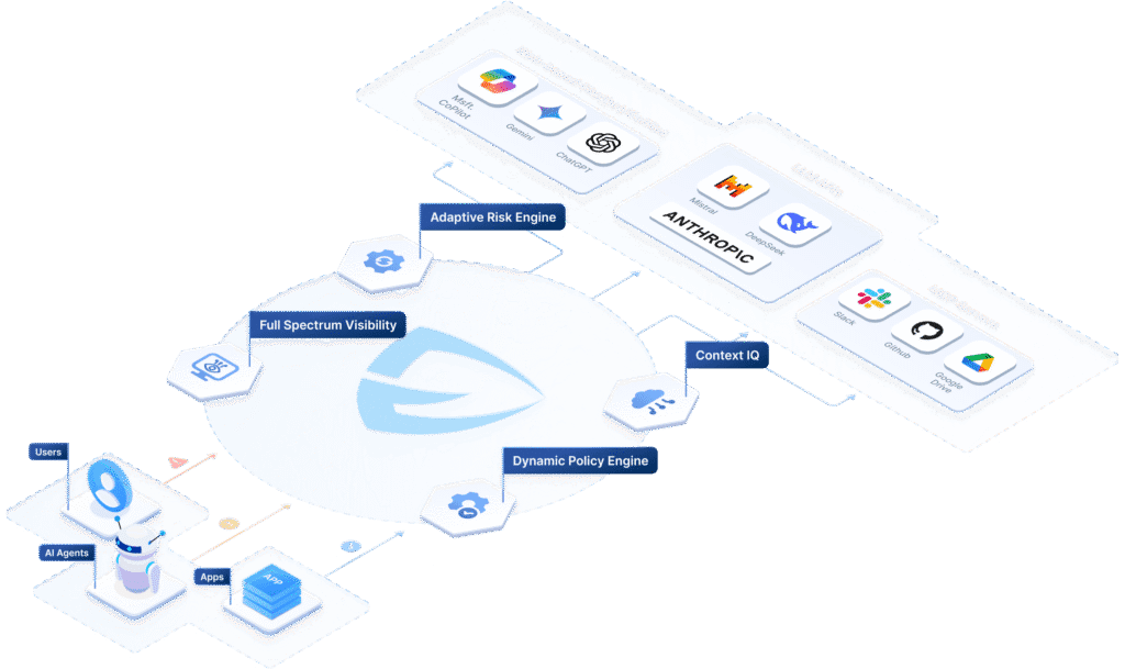Threat Detection: Use AI/ML to identify advanced attacks like prompt injection, jailbreaks, privilege escalation, data leaks, or adversarial exploits.