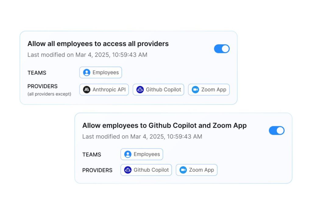 Implement dynamic access controls that adapt based on user identity, data classification, and business context, ensuring employees only access AI tools and capabilities appropriate for their roles and responsibilities.